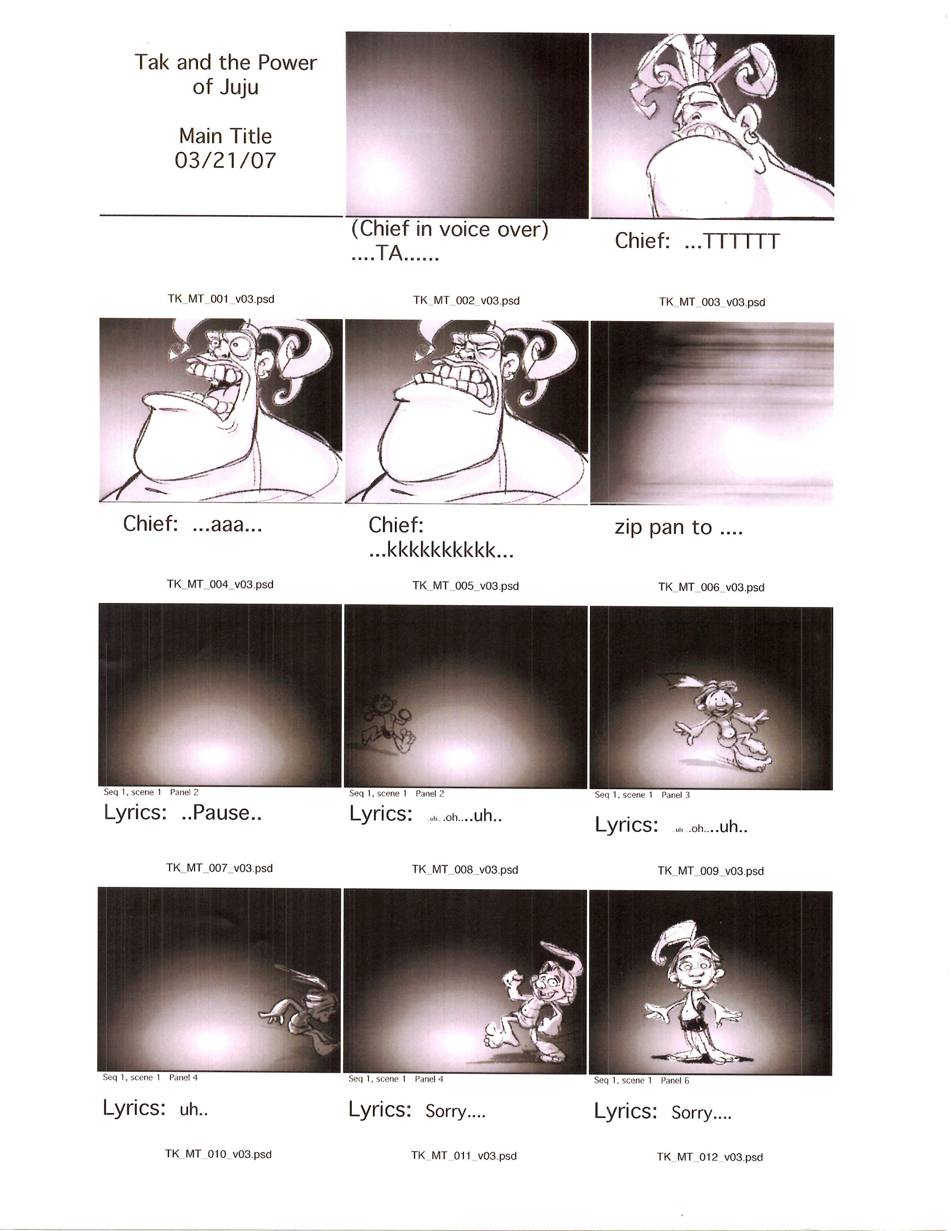 "Tak and the Power of Juju" Storyboards draft maintitle